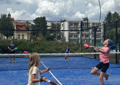 které nabízí skvělé podmínky pro nejrůznější sportovní disciplíny. Pod taktovkou našich trenérů si děti vyzkouší nejen základy atletiky, gymnastiky , tenisu, ale také vodní sporty – veslování, kanoistiku, týmové sporty – fotbal, házenou, basketbal, volejbal a v neposlední řadě i velice oblíbený padel.